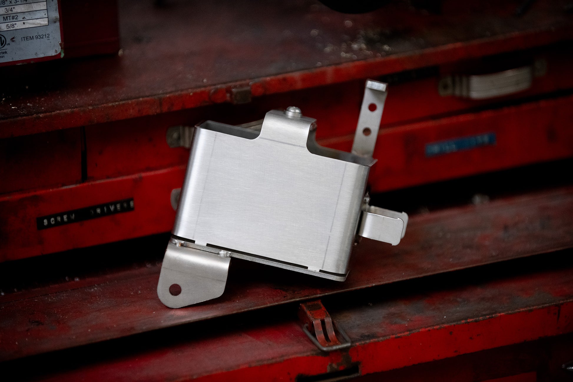 This Battery Box is the ultimate solution for custom motorcycle projects. Mount an 8 cell lithium Anti-Gravity Battery and easily customize your regulator rectifier and start solenoid placement with custom tabs. Durable stainless steel or cold rolled steel options available. Save time and hassle with this must-have build essential.